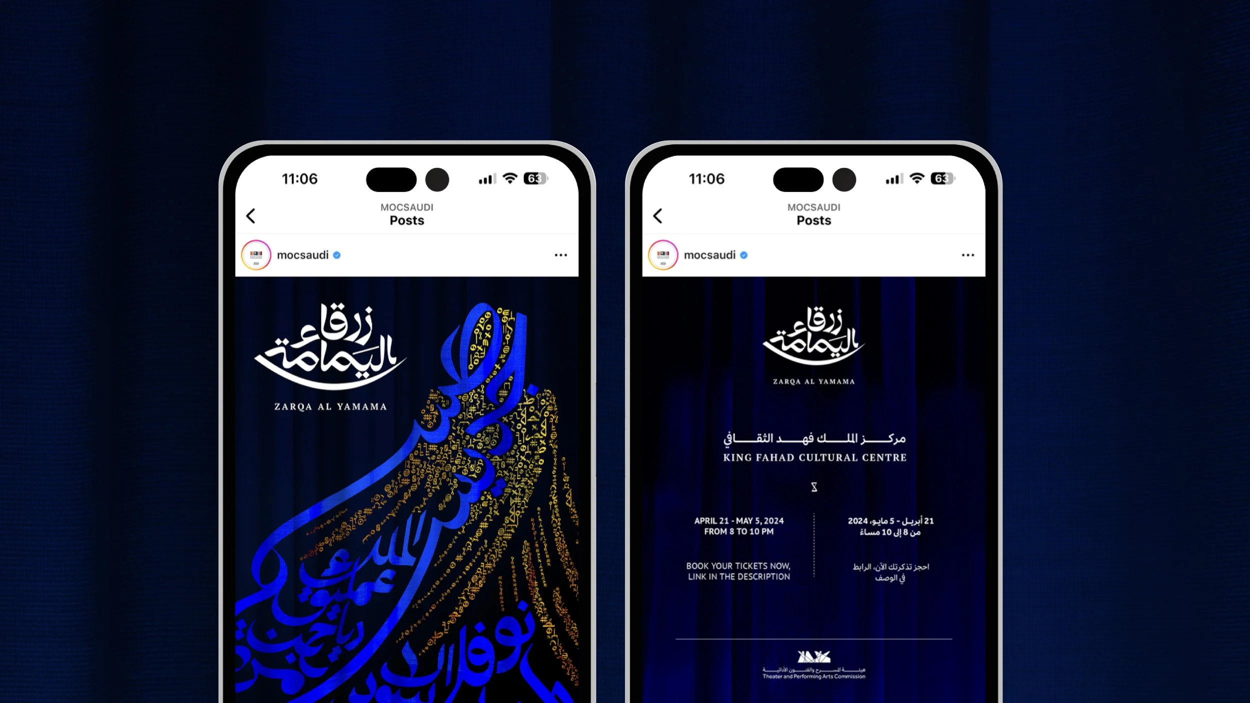 Zarqa Al Yamama Opera is the first Saudi opera based that premiered in April 2024 in Riyadh, Saudi Arabia. The logo is inspired from Zarqa’s vision and her ability to see into the horizon. For the graphical language, we utilized Arabic typography as the main medium to showcase the rich cultural tapestry of the Arab and Saudi heritage. The strokes of the pen transform from letters on the canvas into a visual symphony, where the name of Zarqa herself is emphasized at the heart of the narrative.